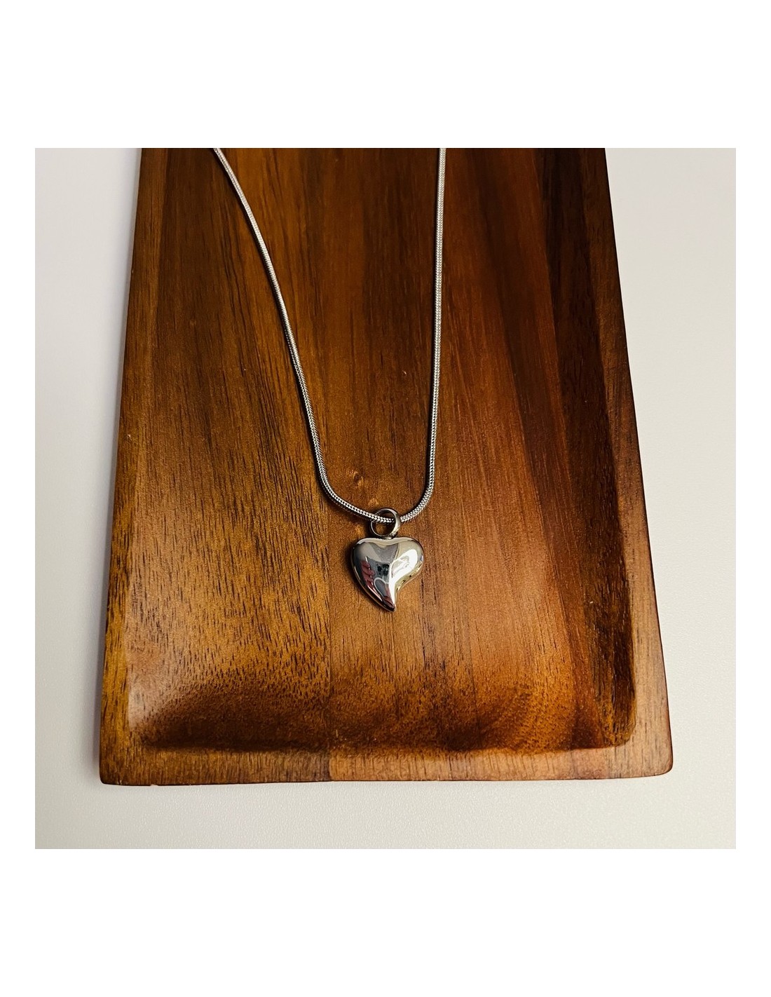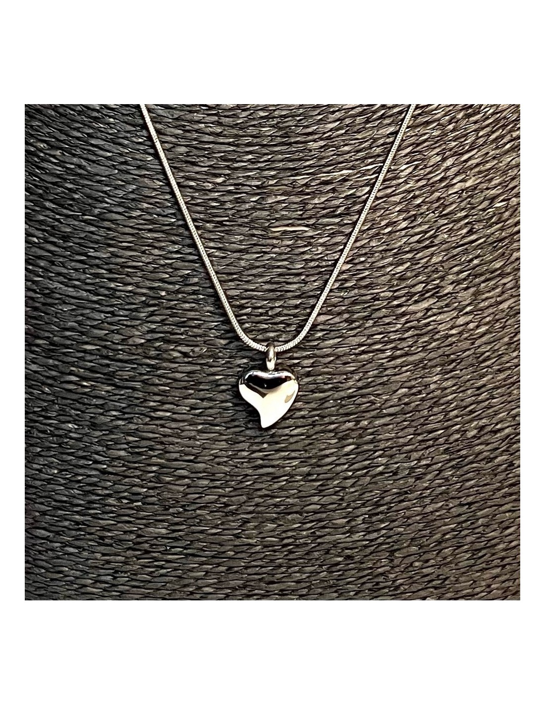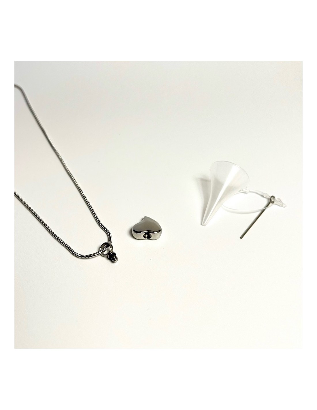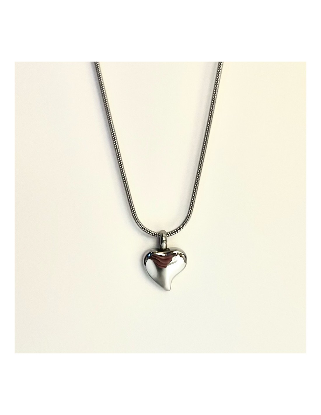 Inspired by a tear in the shape of the symbol of love, the heart, this stainless steel jewel evokes the eternal memory of loved ones. It is a shiny polished pendant that allows storing a small portion of ashes inside. Its screw closure is discreet, secure, and airtight.